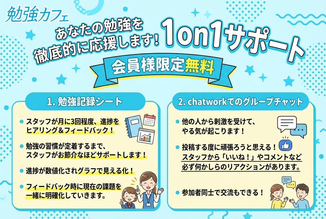 会員様限定!「あなたの勉強を徹底的に応援します! 1on1サポート」