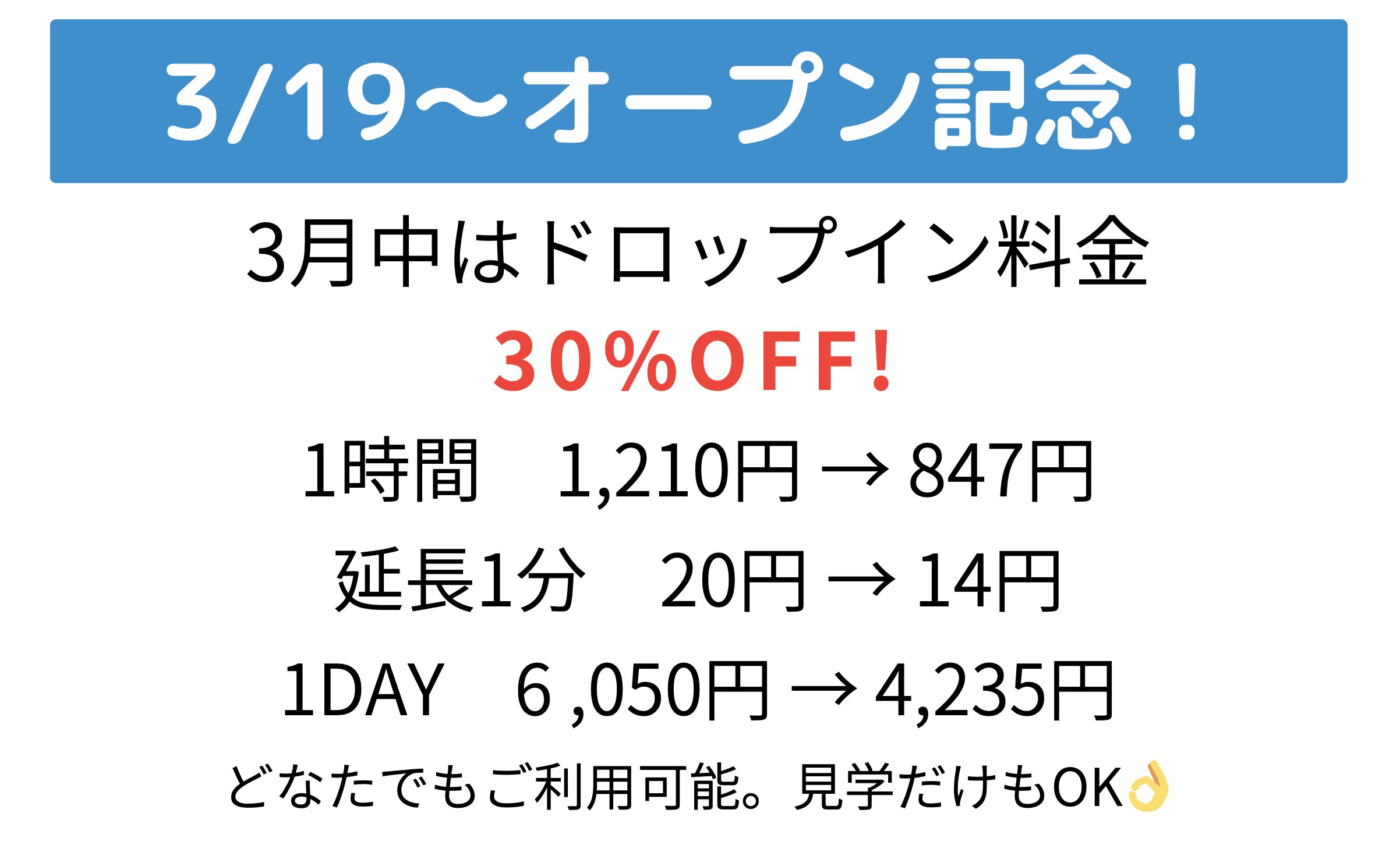 ■ 3月中のドロップインは30%OFF!
