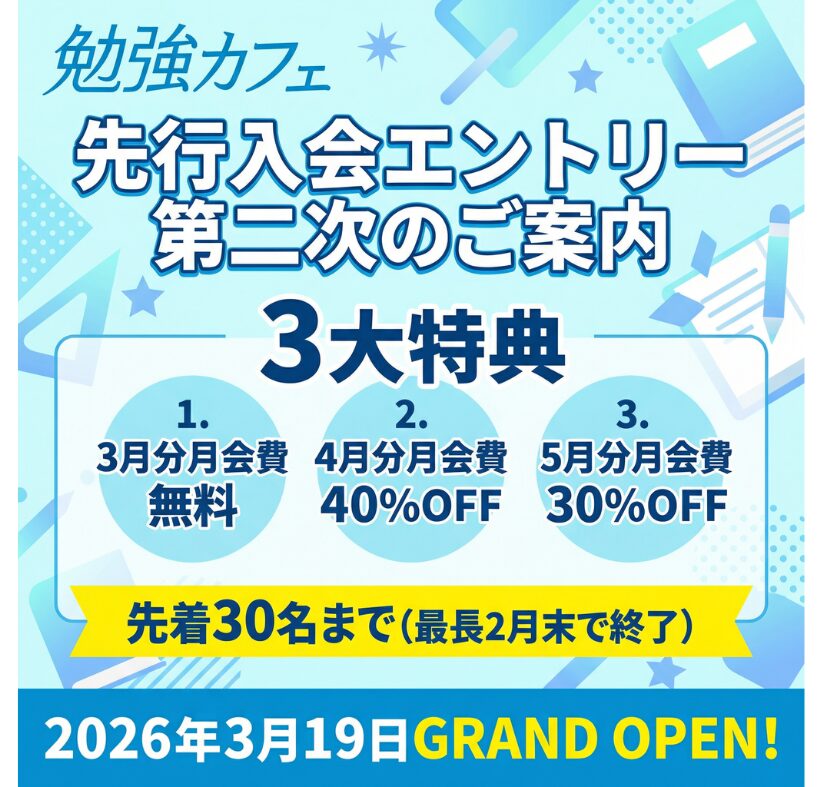 先行入会エントリー(第二次募集)先着30名で終了※最長2026年2月末まで